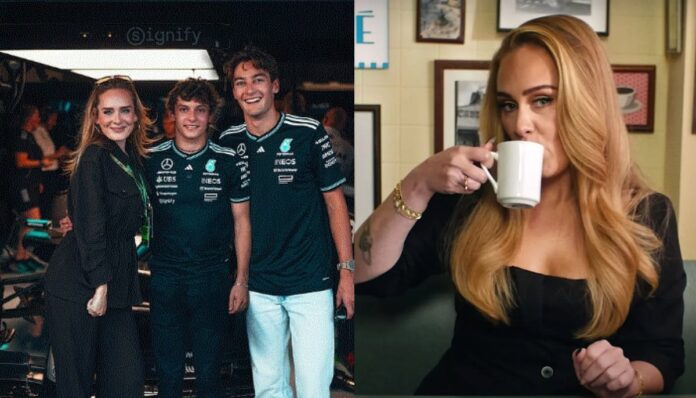 However, after taking an extended break away from the spotlight, Adele opted for a sporty outing, posing for a beaming photo alongside Mercedes drivers George Russell and Kimi Antonelli.