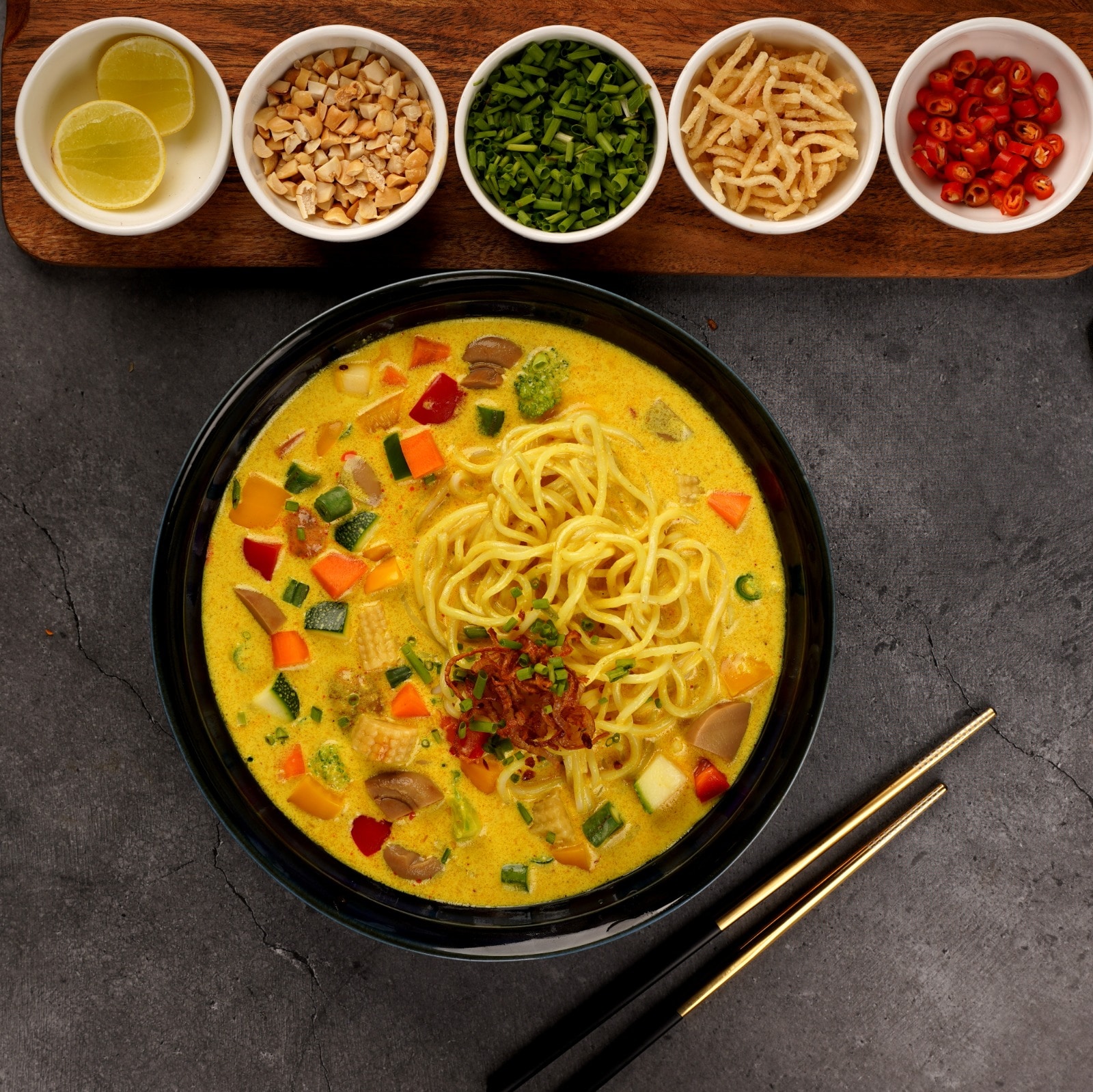 - Condiments – burnt garlic, fried onions, peanuts, lemon wedges