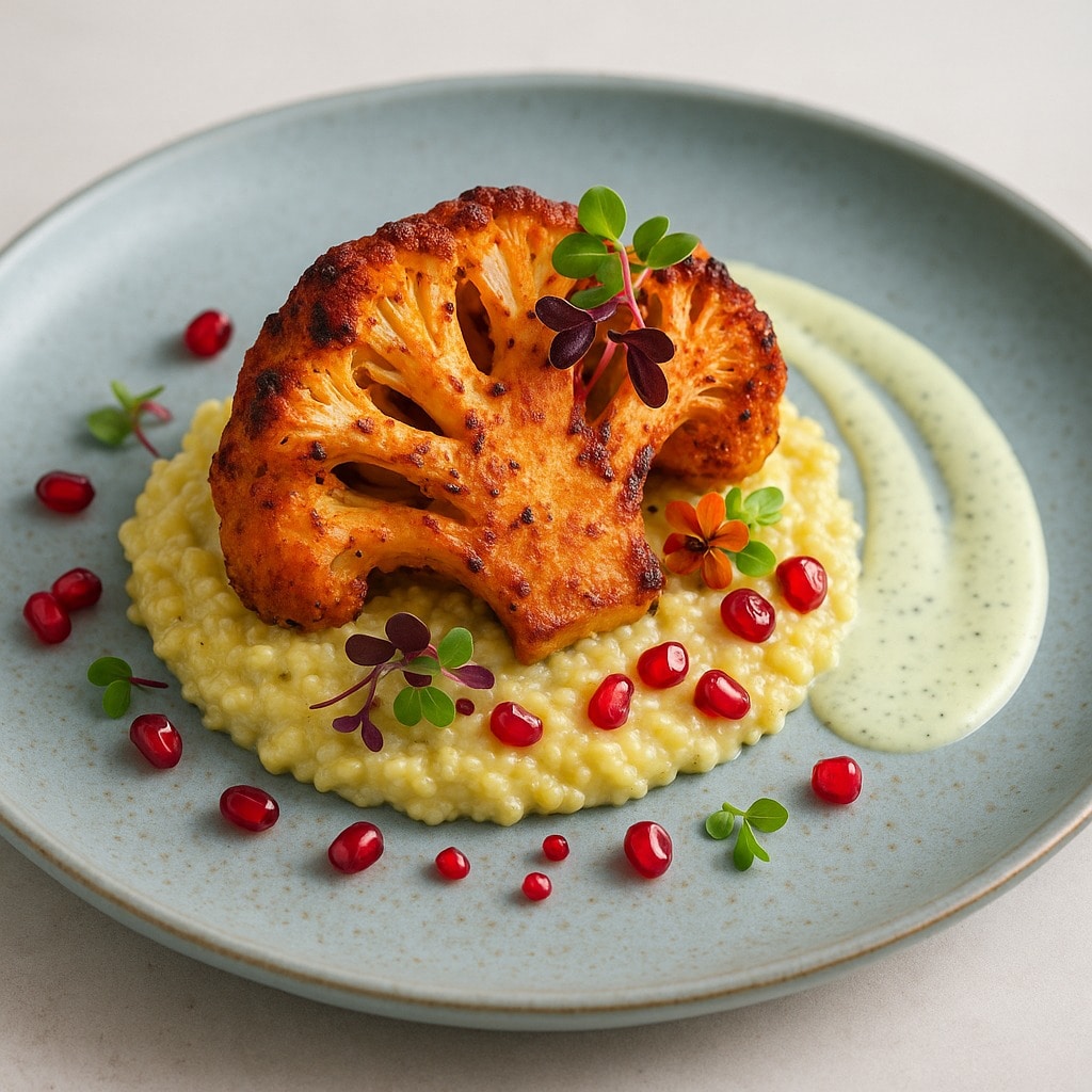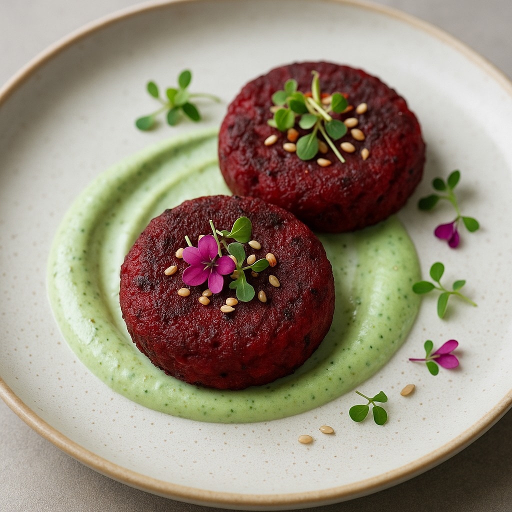 Garnish: Pickled onions, mint, microgreens, lemon wedges, beetroot reduction/pomegranate glaze