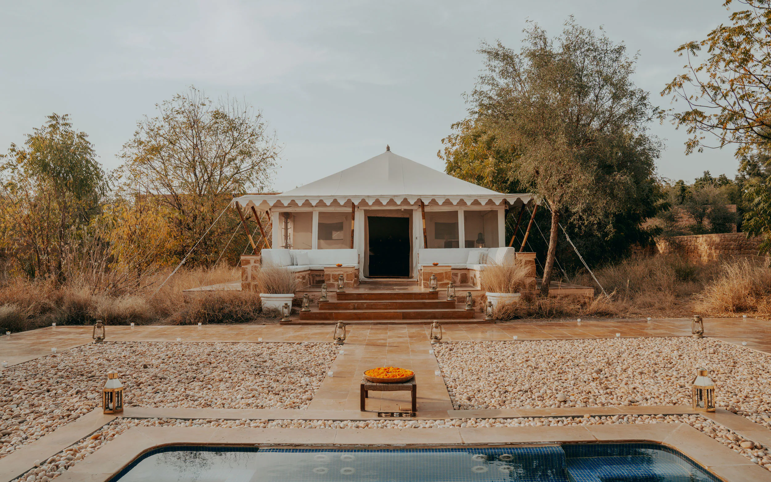 Set on a 100-acre private estate in the Thar Desert, SUJAN The Serai redefines desert luxury. Elegant tented suites, some with private plunge pools, offer refined comfort amid sweeping dunes. Camel safaris, desert drives, spa rituals, and live music under open skies make this a dramatic and unforgettable Republic Day escape.